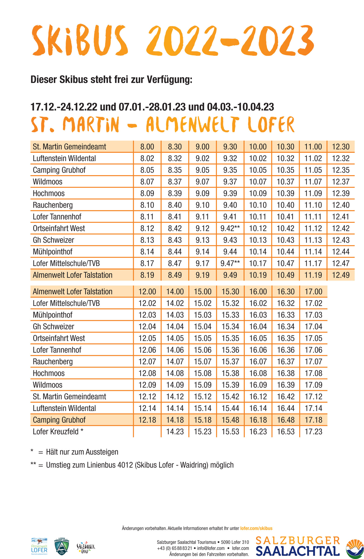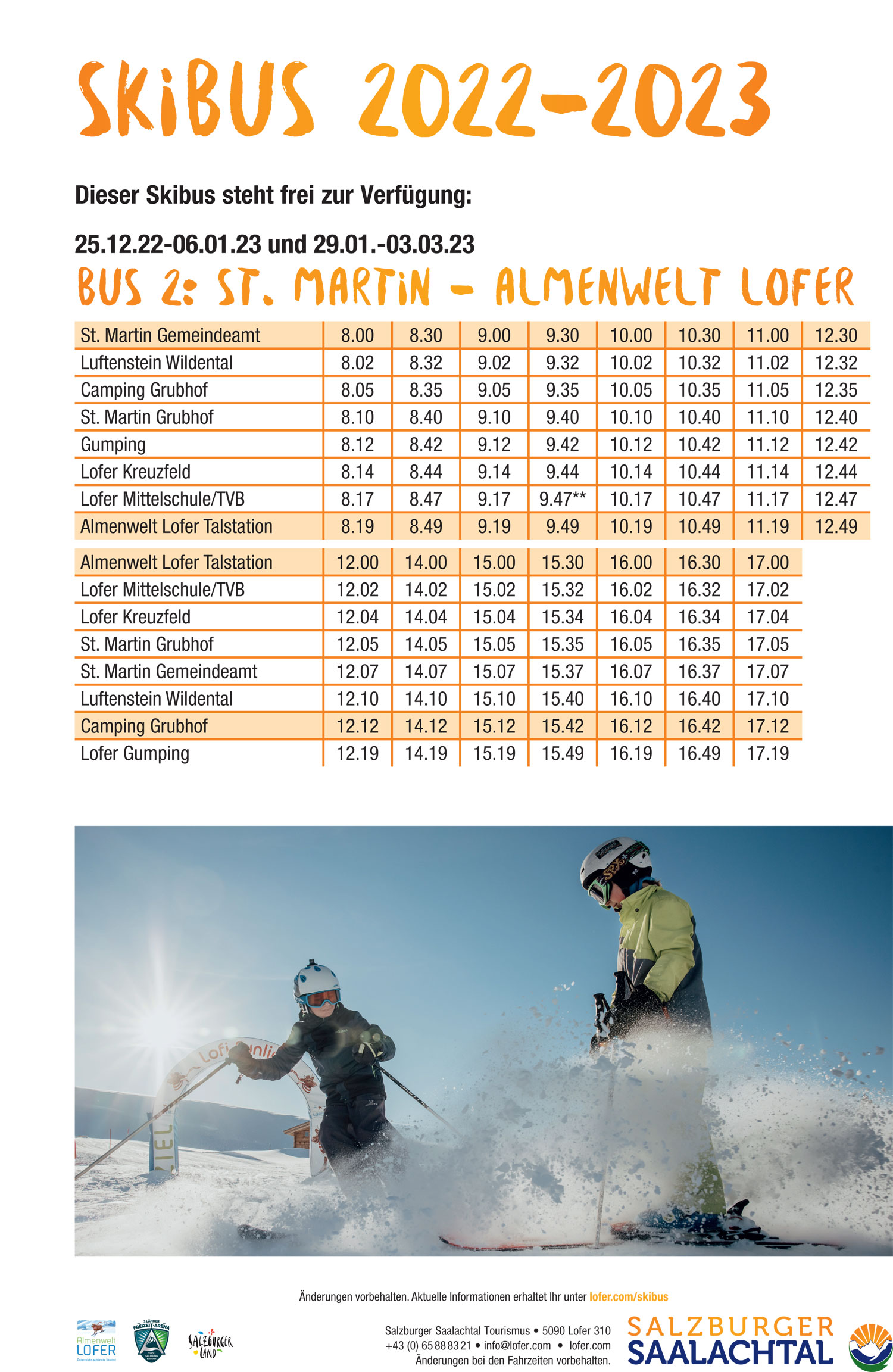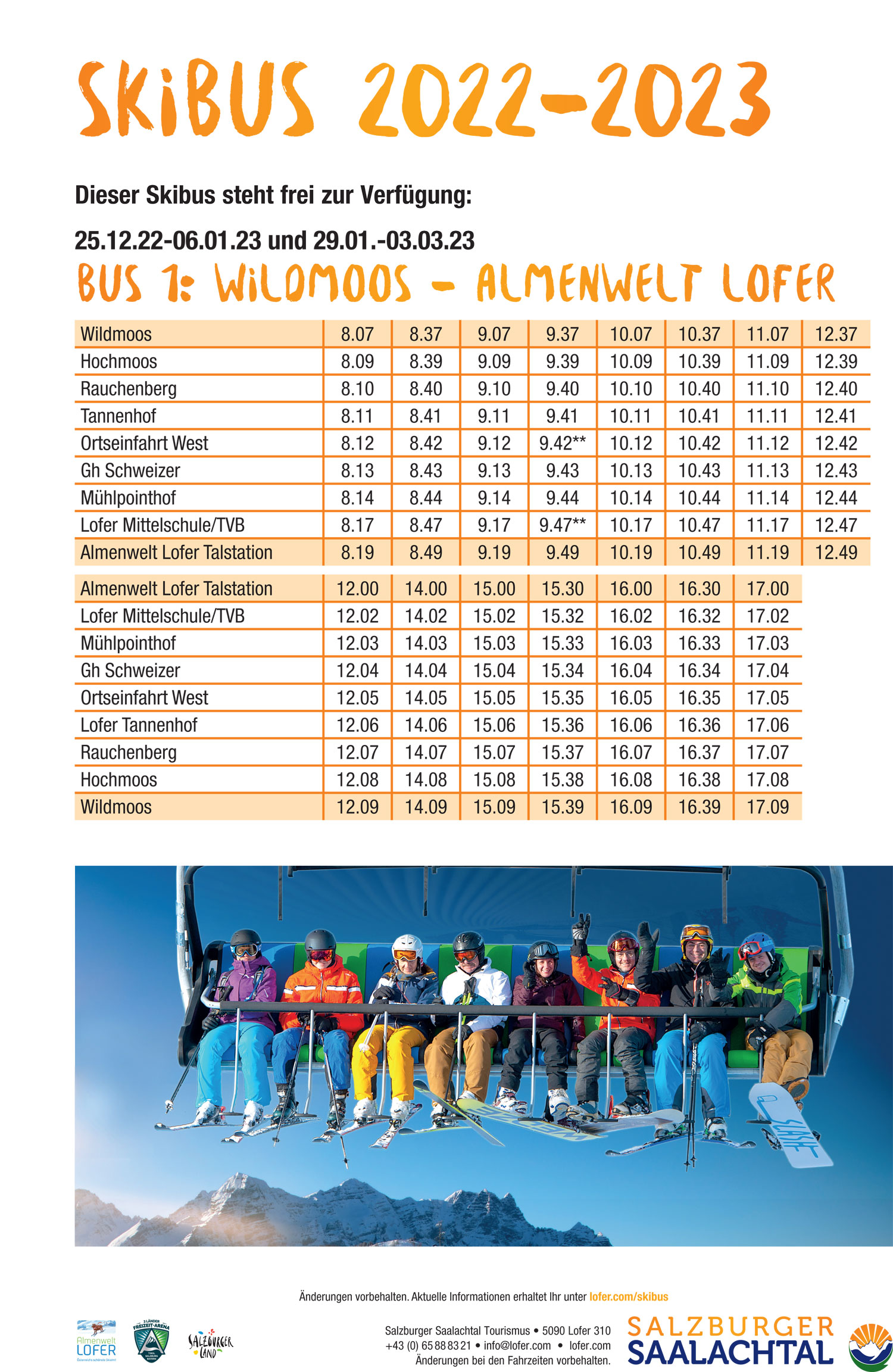 Der kostenlose Skibus bringt alle Wintersportler, Wanderer oder Ausflügler bequem und umweltfreundlich an Ihr Ziel. Die Busse verkehren nach einem festen Fahrplan – unten findet Ihr die passende Linie für Euch