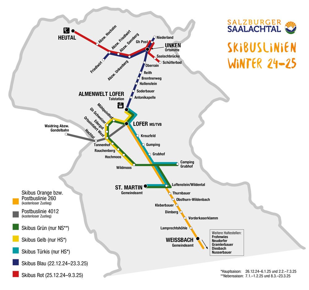 DIE FAHRPLÄNE DER KOSTENLOSEN SKIBUSSE 2024-25