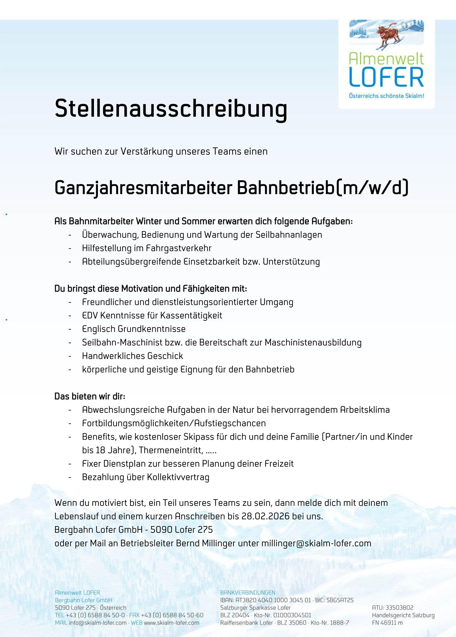 Täglicher Skibetrieb bis 06. April 2026 von 08:30 - 16:00 Uhr. Jeden Samstag sind die eigenen Kinder bis 18 Jahre in Begleitung beider Elternteile frei.