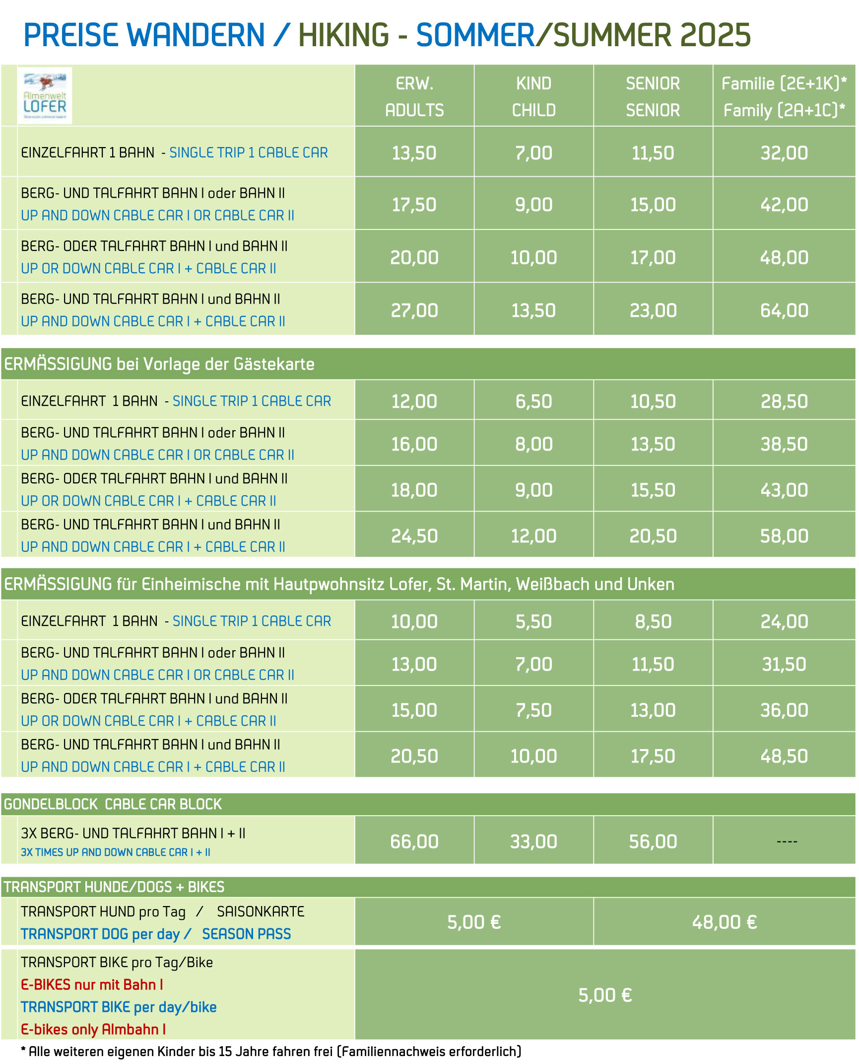 - Weitere Ermäßigungen erhalten Familien mit dem Salzburger Familienpass und der Oberösterreichischen Familienkarte!