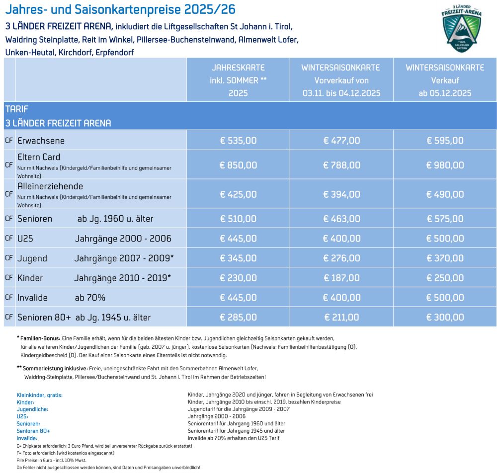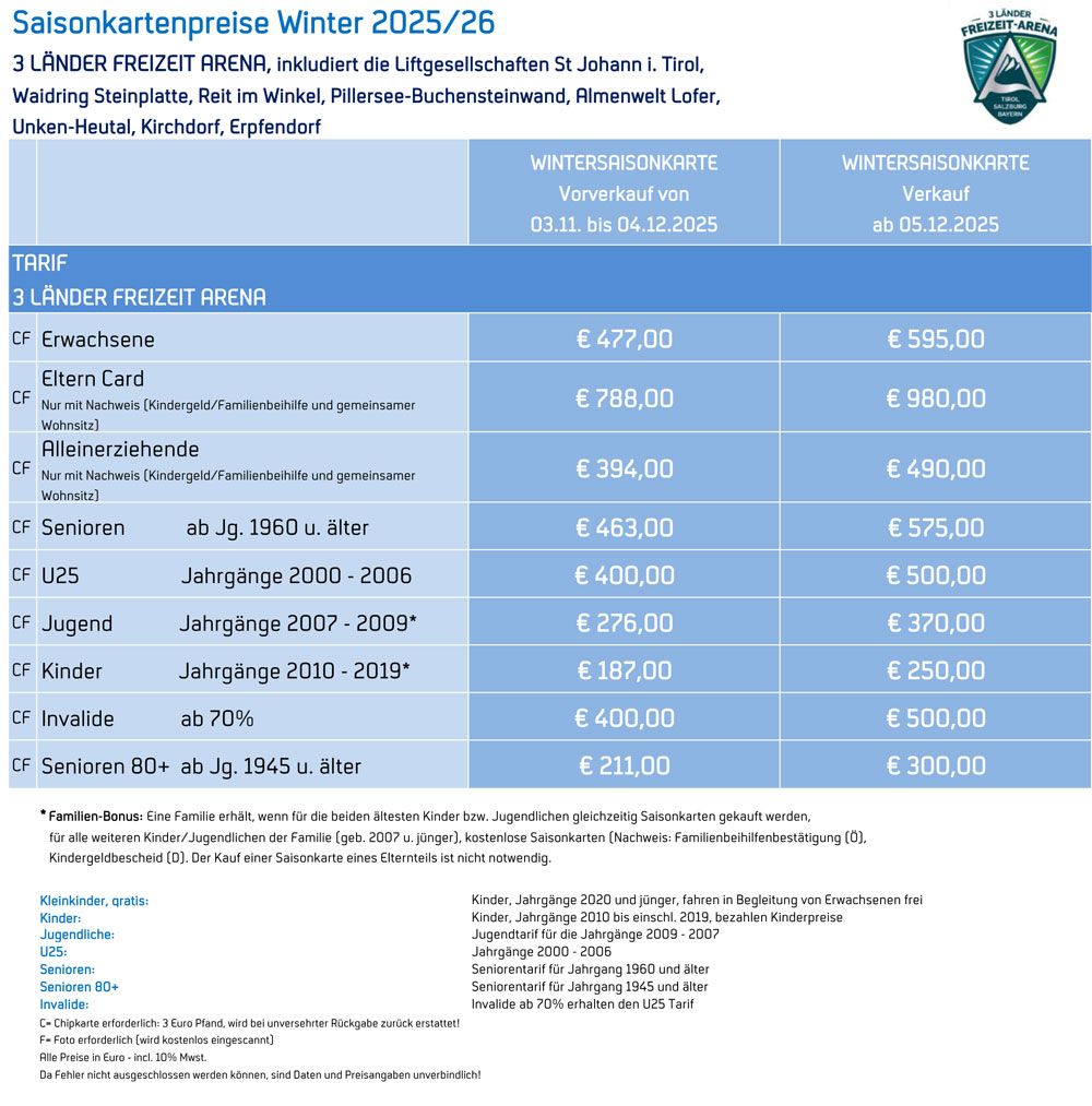 Weitere Infos zu den einzelnen Skigebieten finden Sie auf der Website der 3 Länder Freizeit-Arena.