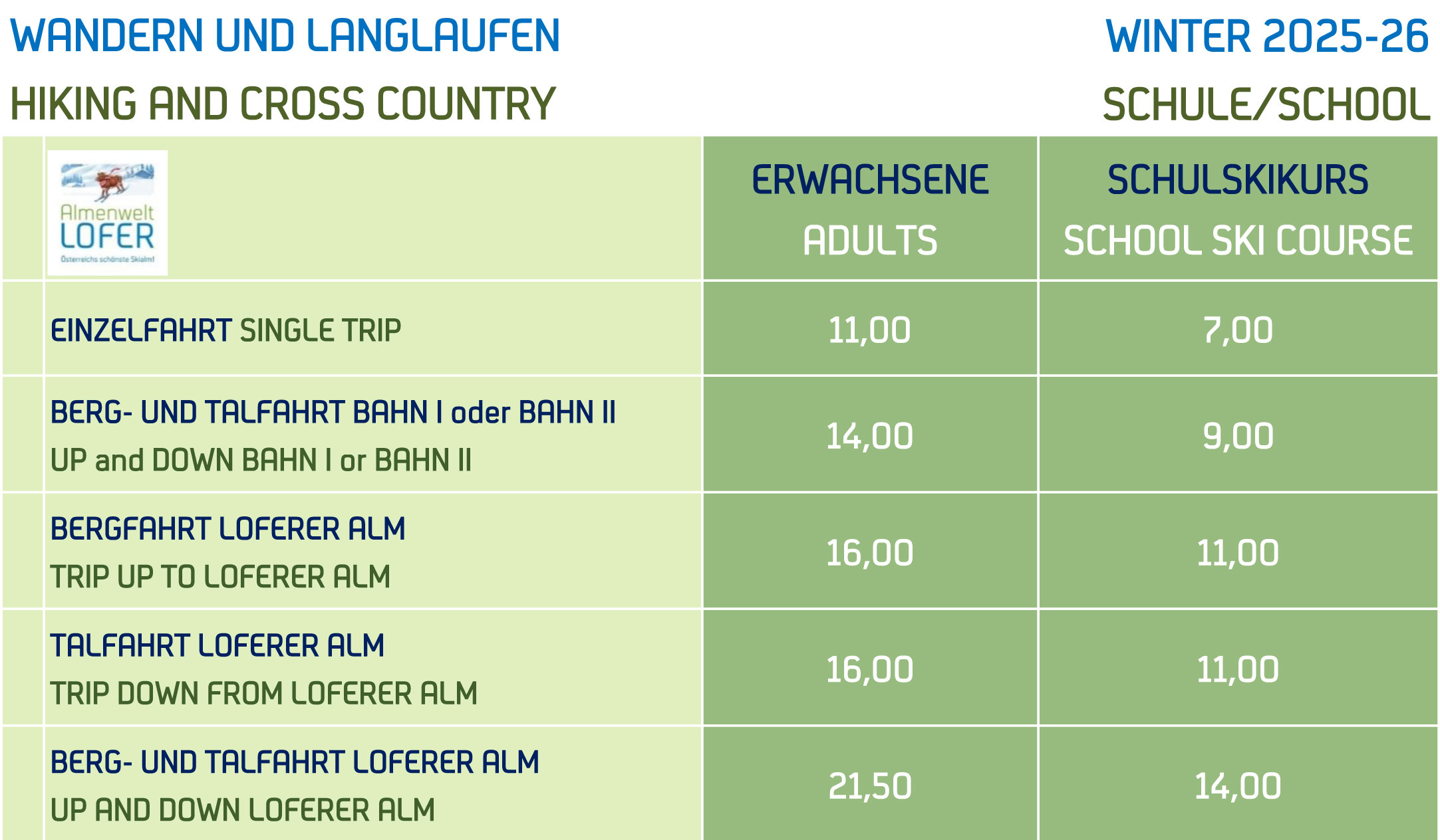 Schulskikurs: Preise gelten für Kinder und Jugendliche (Jahrgänge 2019 - 2006) bis 19 Jahre - nur bei Schulen!
