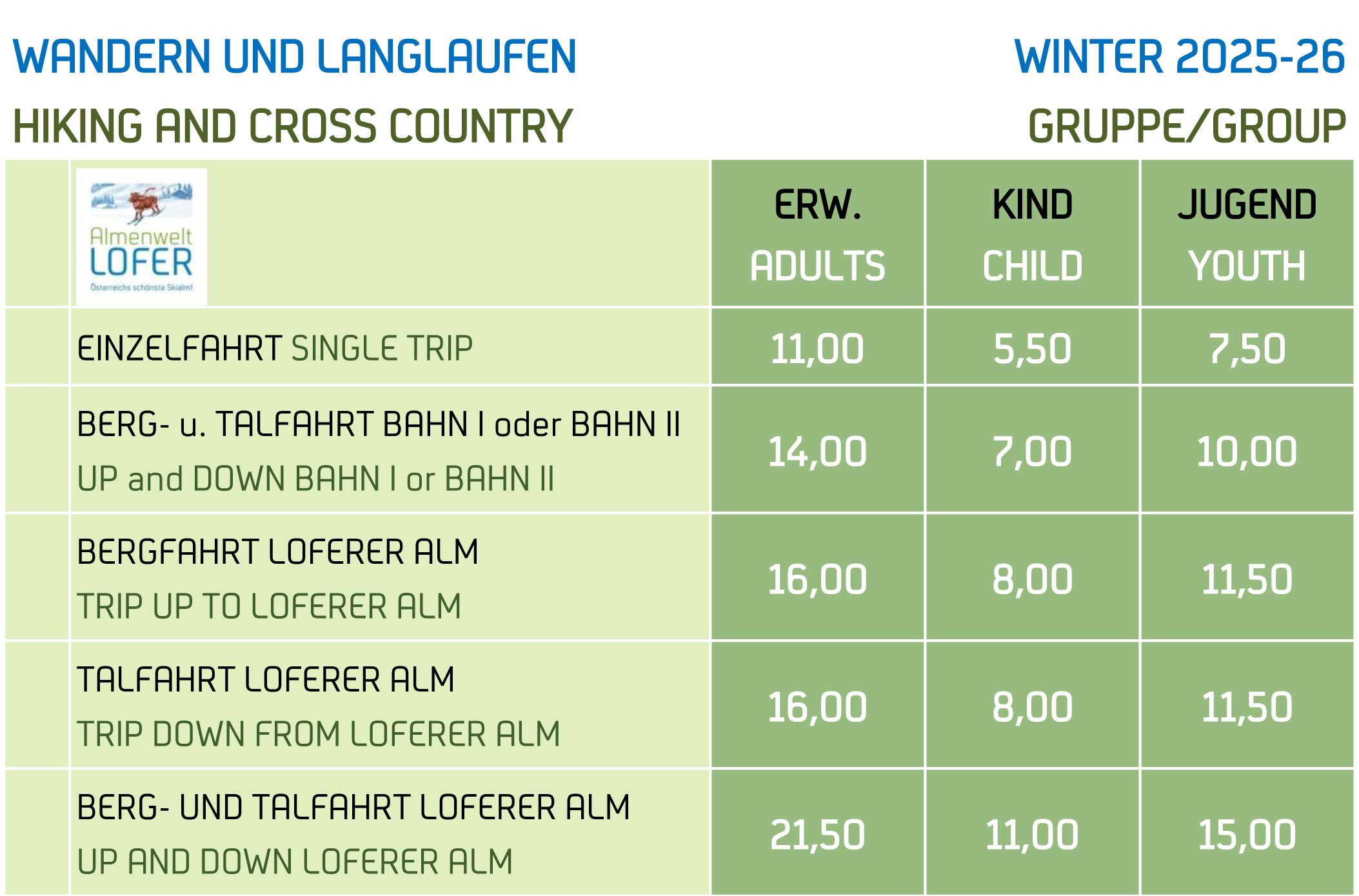 Gruppenpreise erhält man ab 20 Personen. Freiplätze 10/1