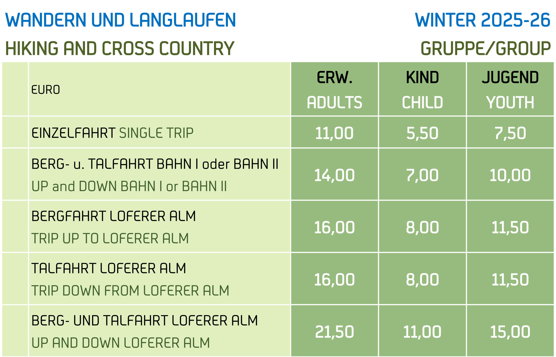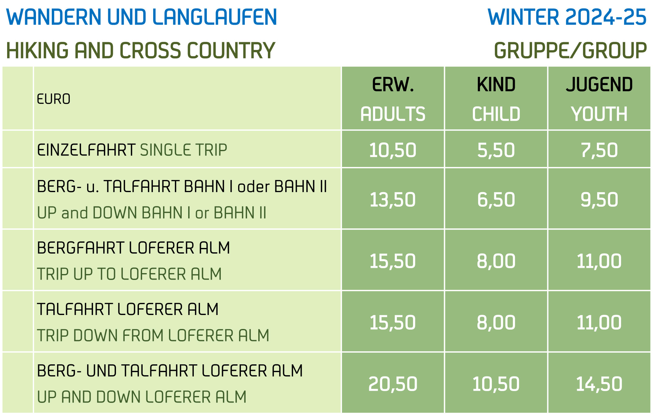 TAGESKARTEN GRUPPE (1 - 2 Tage)