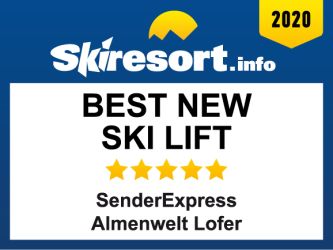 Skiresort.info, the world’s largest test portal for ski resorts awarded Almenwelt Lofer as Top class: World-leading ski resort with up to 60 km of slopes" in 2025! As well as the new 8-seater chairlift SenderExpress lift as the world-wide "Best new lift 2020/21".