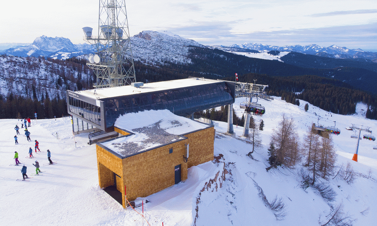 New 140m „magic carpet“: One of the longest covered conveyer belts in the alps (called „magic carpet“) has been developed in winter 2012/13. This conveyer belt is perfect for children and beginners. For the first time, the belt has been equipped with an exit in the middle (this way, beginners can exit before entering the steeper part). It guarantees a wind and weather protected transport and replaces 3 old drag lifts.